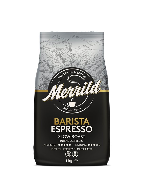 Vi har fundet Merrild Barista Espresso – G fra Merrild hos Proshop.dk i kategorien Kaffe Og Espresso. – Hele bønner- 1000 gram- Styrke: 5- Ristning: MellemBønnerne ristes langsomt for at opnå en mørkere og kraftigere smag, som er velegnet til de fleste bryggemetoder – men i særdeleshed velegnet til brygning på fuldautomatiske espressomaskiner, hvor den la
