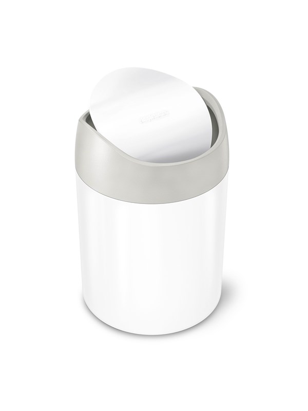Vi har fundet Simplehuman L Mini Affaldsspand Hvid fra Simplehuman hos Proshop.dk i kategorien Affaldssortering. Perfekt til dit makeupbord og ideel til at smide vatpinde, makeupfjernerservietter og eyelinerblyantspåner væk. Eller brug den i køkkenet til tebreve, kaffekapsler og madaffald; eller i vaskerummet til fnug og tørretumblerark. Det afbalancerede svinglåg å