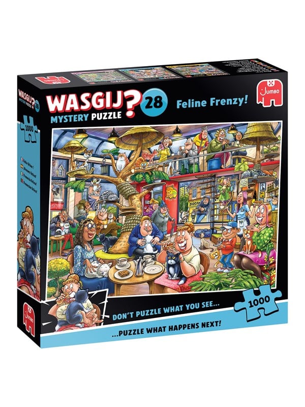 Vi har fundet Wasgij Mystery Puzzle Feline Frenzy fra Wasgij hos Proshop.dk i kategorien Puslespil. Det var kattens! (1000 brikker)Katte af enhver art byder gæsterne velkommen til Café Kisser, en oase, hvor man kan slå en time ihjel med at drikke kaffe med en aimabel mis på skødet. Det er svært at sige, hvem der spinder højest – kattene eller deres bege
